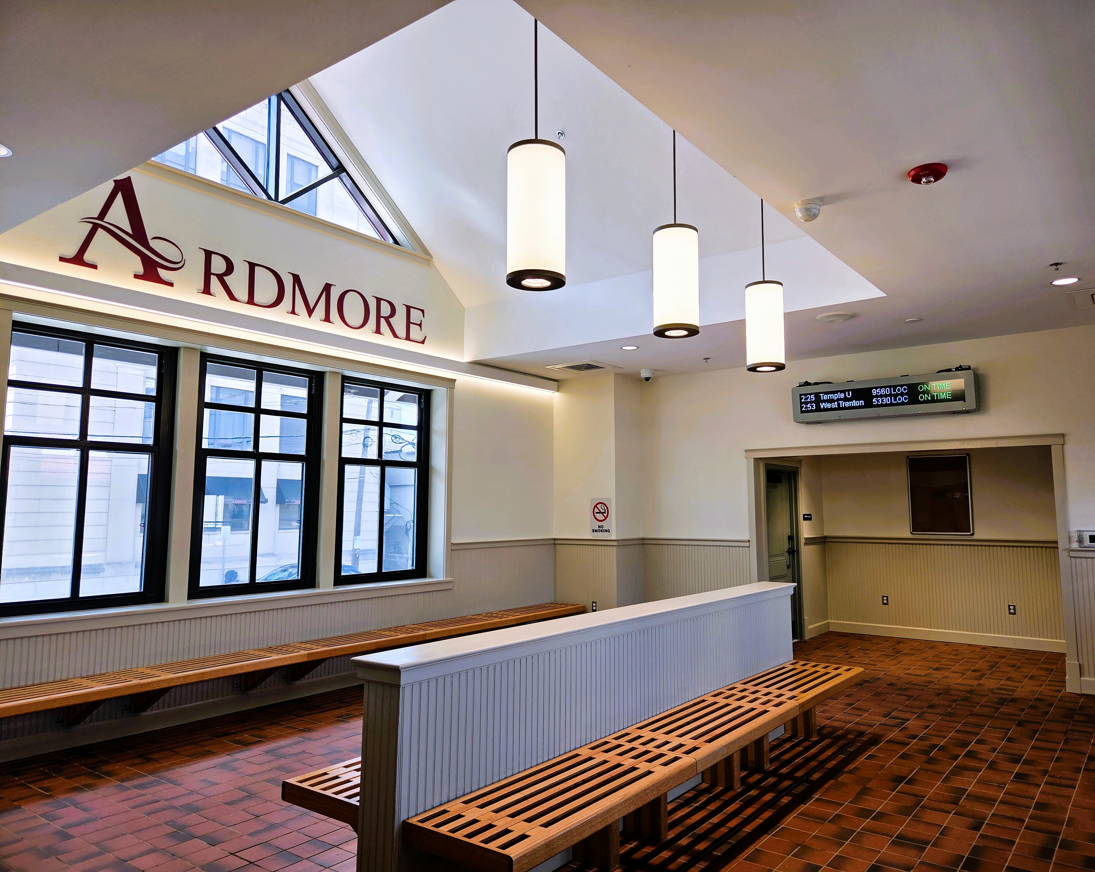 The station reopening follows the recent presentation of design plans for the transformation of Ardmore’s nearby Schauffele Plaza and an adjacent parking lot into a verdant town square. Both projects are elements of the township’s ambitious Ardmore Master Plan of 2023, which envisions the station area as a regional transit hub, serving as a gateway to Suburban Square, downtown Ardmore and the greater Main Line. Long-range planning includes construction of a multi-modal, muti-use parking garage with ground-level retail and access to national and regional rail service as well as local bus lines.