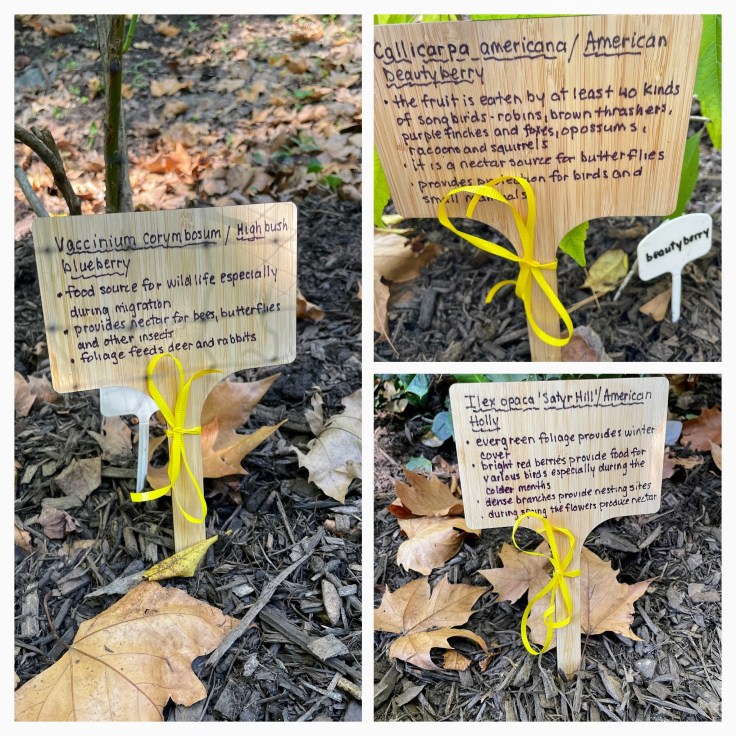 The newcomers will be picked from a list of native plants selected in consultation with Steve Wright, who also drew up the design plan. These sun-seeking, bird-friendly species include dogwood, elderberry, blueberry and viburnum, as well as roses, asters and goldenrod. The plants will get ID tags with their botanical and common names to further the educational goals of the project.